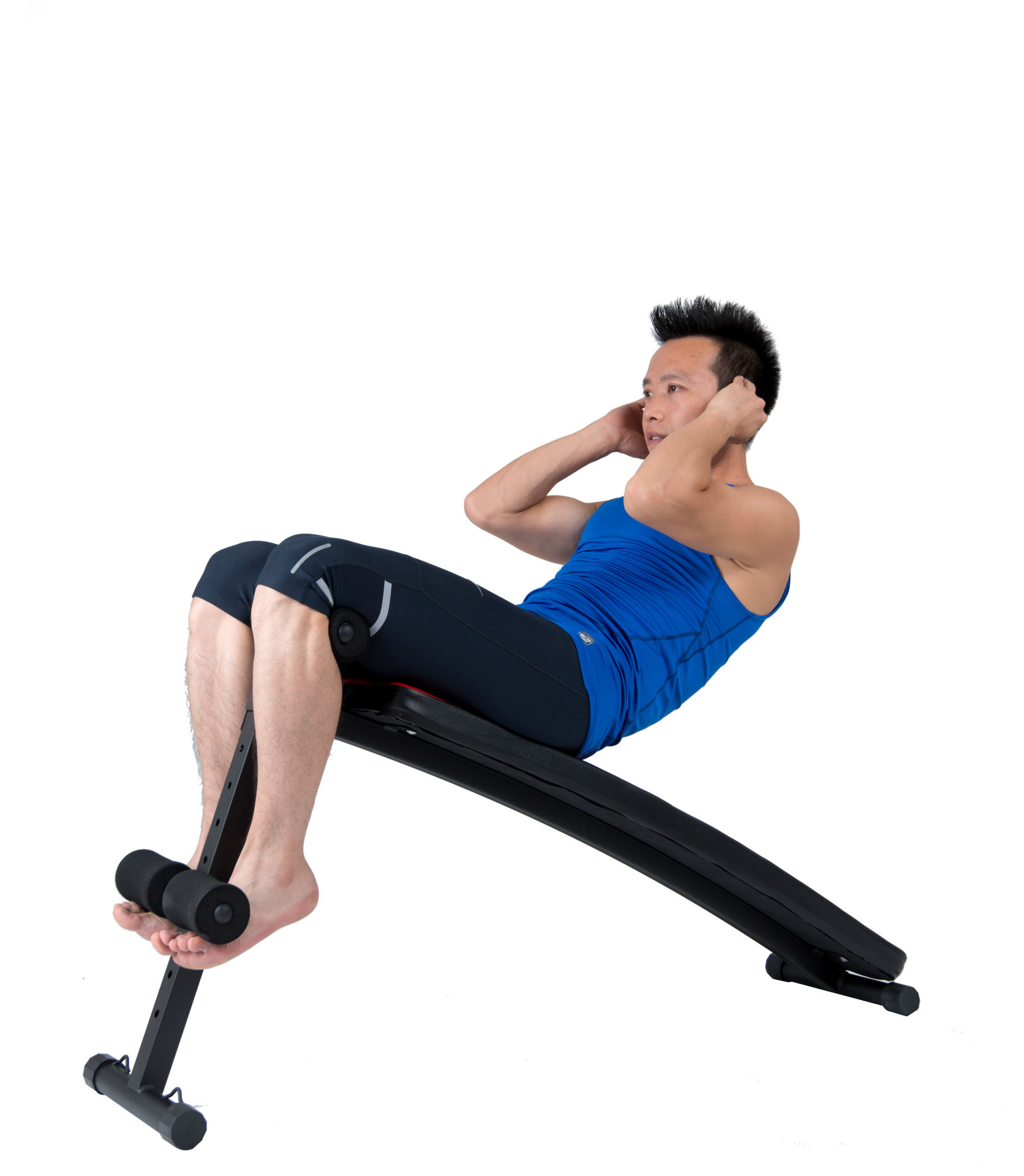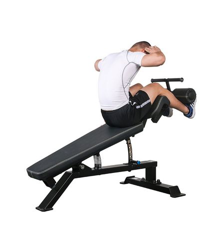 首先,我們來介紹一個常見的腹部健身器材——仰臥起坐板。使用仰臥起坐板時,首先需要將板子調到適當的角度,然后選擇呈坐姿的方式坐到板子上,將雙腿和臀部固定于垂直位置,雙手交叉抱于胸前,然后開始做仰臥起坐。在做運動時,應該注意雙手不要搭在脖子后面,以免壓迫頸椎;在起坐的過程中,盡量用腹部的力量慢慢坐起來,不要有腰部或者頸部的擠壓感。